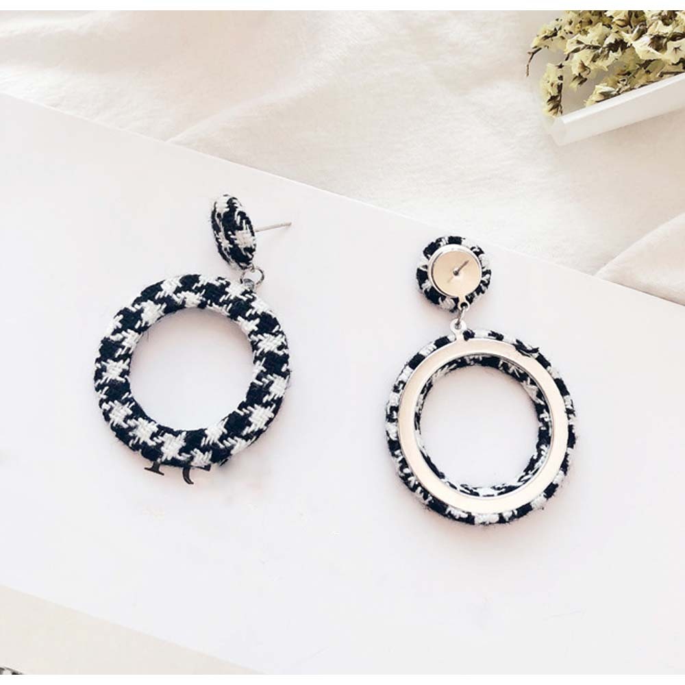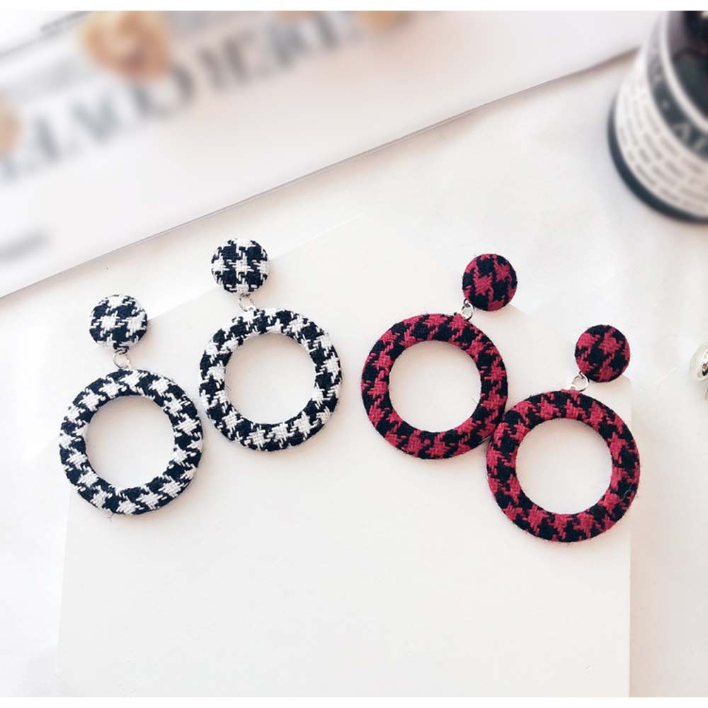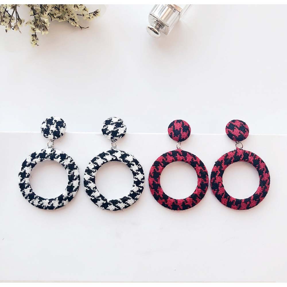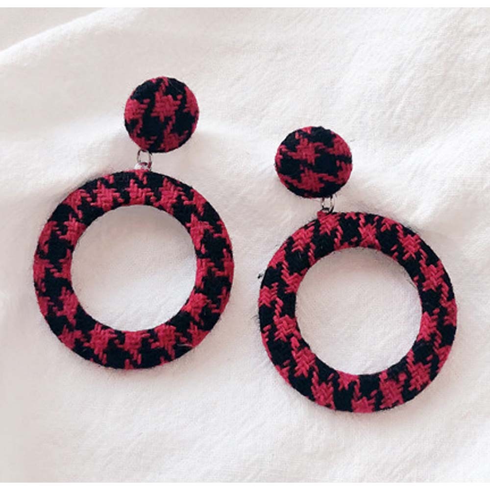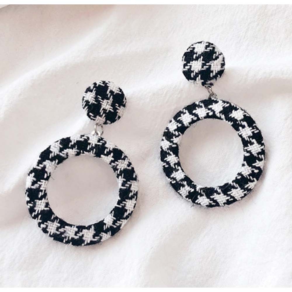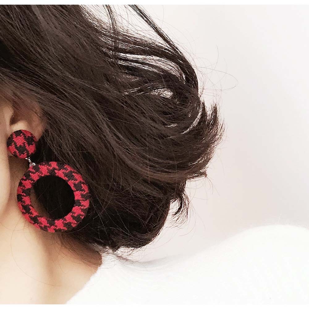 季節感のある千鳥柄ツイード生地を使った存在感のあるピアス