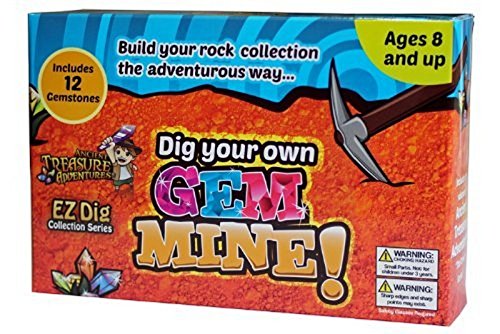 -. Binding : Toy -. Brand : Gem Center U.S.A. -. EAN : 0804879458555 -. Feature : Dig up 12 naturally occurring gemstones / Specially formulated to be easy to dig / Includes a 12 page gem guide with over thirty gemstones identified, try to collect them all / Digging tool, magnifying glass and small brush included / One ancient treasure adventures comic included lots of fun for the young adventurer -. IsAdultProduct : 0 -. Label : Gem Center U.S.A. -. Manufacturer : Gem Center U.S.A. -. Model : DYOGMEZ -. MPN : DYOGMEZ -. PackageQuantity : 1 -. PartNumber : DYOGMEZ -. ProductGroup : Hobby -. ProductTypeName : HOBBIES -. Publisher : Gem Center U.S.A. -. Studio : Gem Center U.S.A. -. Title : Gem Center U.S.A. - Dig Your Own Gem Mine - 12 Gemstones - EASY TO DIG -. UPC : 804879458555