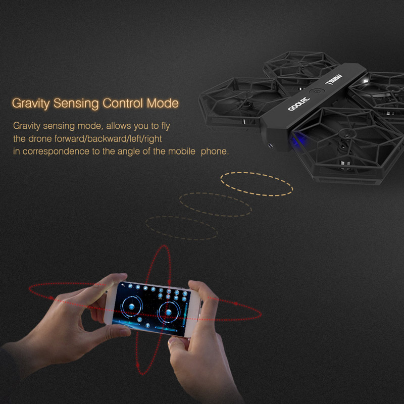 重力感知モードでは、携帯電話の角度に応じてドローンを前後左右に飛行させることができます。