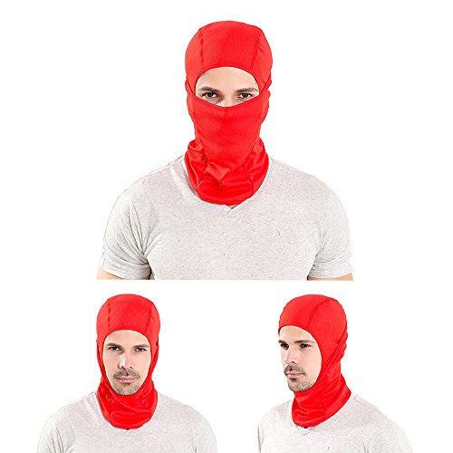 Why You'll Love Your Versatile Balaclava : ? Gives cold, wind and sun protection while skiing, motorcycling, running, cycling, trekking, fishing, hunting, hiking and other outdoor activities. ? Please note: this product provides natural and inherent UV protection because it covers the skin and obscures it from the sun's damaging rays. ? Extremely breathable. Wrinkle free. ? Has a more natural and smoother fit than regular balaclavas. ? You can easily fit it on - lightweight - stays comfortable on your head. ? Allergy free, no headache, eco-friendly and odorless - this balaclava is made of new developed polyester fiber that pulls moisture away from your skin. ? One size fits most. Designed for men and women. ? Machine washable and dryable.