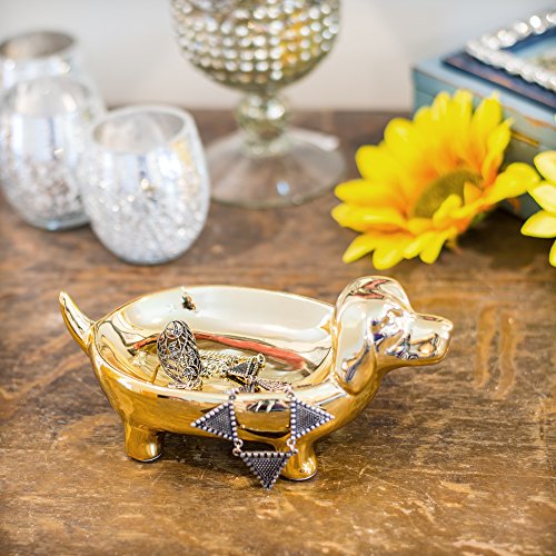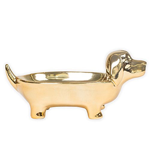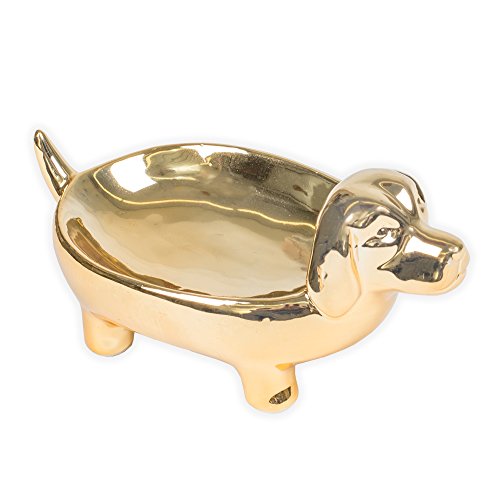 Drew Derose 7.5" x 4.75" Ceramic Gold-Toned Dog Shaped Soap Dish
