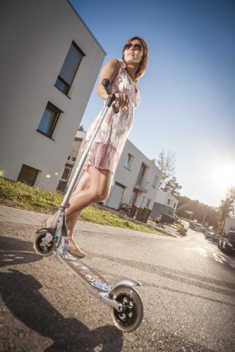 - Feature : 145mm polyurethane wheels / Folds-down for convenient storage and transportation of scooter itself / 220 pound weight limit / Ages 13+up / Comfortable sandwich flex deck