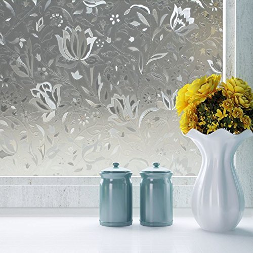 Becry PVC No Glue No-Adhesive Decorative Flowerpot Pattern Stained White Frosted Shop Office Home Office Stained Window Door Glass Film Decals,99% UV Protection 17.7-by-78.7 Inches(45 x 200CM)