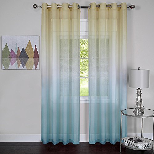 Grommet Linen Like Semi Sheer Graduated Color Creating an Ombre Running Up The Panels