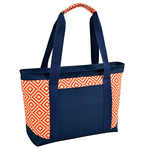 Picnic at Ascot Diamond Collection Large Insulated Tote, Orange/Navy