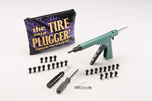 -. Feature : On the Spot - On the Wheel Tubeless Tire Repairs / (25) Mushroom shaped rubber plugs; / Professional repairs anyone can do; / Proven effective in emergency situations; / The vinyl zippered pouch measures 6 1/2" x 9" x 1" and weighs 1 lb. 14 oz