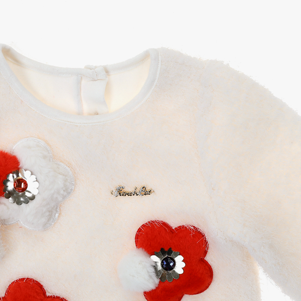 상품설명 아이보리 컬러의 뽀송이 탑입니다. 가슴에 패치 꽃 입체자수와 꽃잎,보석등이 고급스러운 느낌을 줍니다. 소매에 턱 주름을 잡아 러블리함을 더했으며, 화이트 반폴라 티셔츠와 레이어드하시기 좋습니다. 레드 트위드 스커트또는 네이비 쟈가드 치랭스와 코디하시면 좋습니다.