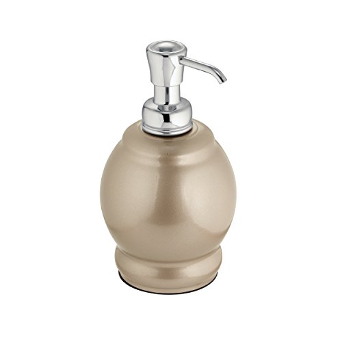 mDesign Liquid Hand Soap Dispenser Pump Bottle for Kitchen, Bathroom | Also Can be Used for Hand Lotion & Essential Oils - Short, Pearl Champagne/Chrome
