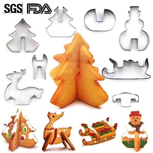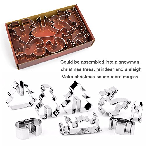 KALREDE Christmas Cookie Cutter Set 8 PCS - Mini Cookie Cutters for Kids Stainless Steel- 3D Cookie Cutter or Biscuit Cutter Include Christmas Tree, Snowman, Sleigh, Elk