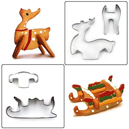 1. CREATING A 3D CHRISTMAS SCENARIO - The christmas cookie cutter set could be assembled into a snowman, christmas trees, reindeer and a sleigh by the assembling cookie parts. Make christmas scene more magical and make kids love cooking with this biscuit cutter!