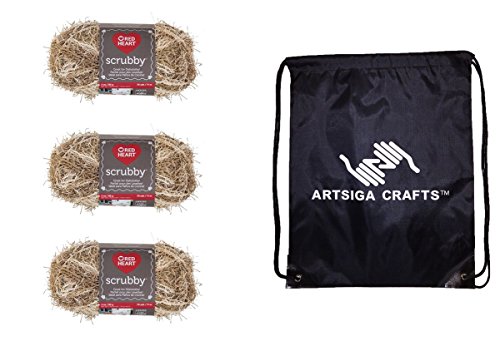 - Bundle Includes 3-Pack of Red Heart Scrubby Yarn Almond E833-0938 with 1 Artsiga Crafts Project Bag
