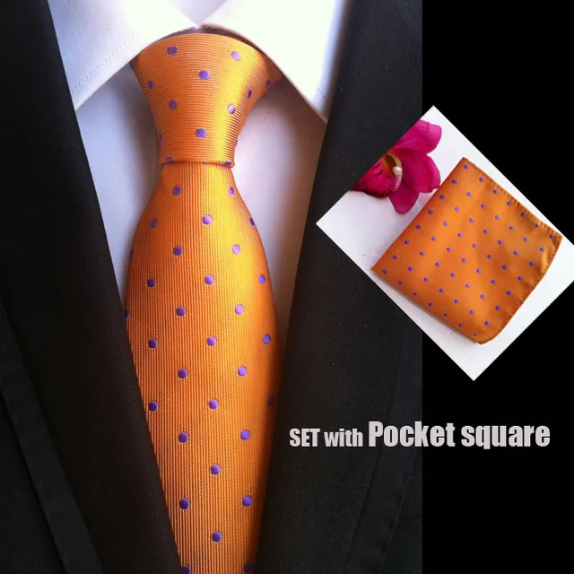 | [해외]남성 패션 포켓 광장 orange 도트 독특한 라벤더 넥타이 손수건 폴리 에스테르 실크 넥타이 세트 t018 |