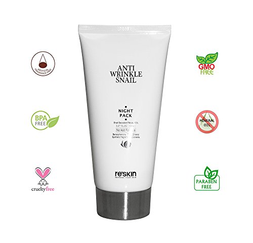 -. Binding : Misc. -. Brand : reSkin -. EAN : 8809124283496 -. Feature : Contains 70% of Snail Secretion Filtrate. A clear complexion: moist polymer gels and active ingredients from plants soothe and nourish rough skin. Wake up with soft, dewy and glowing skin. / Relaxing herb scents: relaxes your mind and body with delicate herb scents, giving your skin a rest. / Intensive skin care while sleeping: creates an essential moisture layer on the skin during the time you sleep, this mask protects your skin. Simple and easy to sue - just apply P.R.Ior to sleep and leave on overnight without cleansing. / Oil-Water Balance/Nourishing/Soothing. This simple facial mask for overnight use supplies nutrition and moisture to skin while sleeping and calms skin. It is a simple and convenient mask to use, which does not need to be removed. / Made in Korea. 5.2oz/150ml. For all skin types. Sold by RESKIN COSMETICS(manufacturer) -. IsAdultProduct : 0 -. Label : Kolmar -. Manufacturer : Kolmar -. MPN : Reskin Anti Wrinkle Snail Night Pack -. PackageQuantity : 1 -. PartNumber : Reskin Anti Wrinkle Snail Night Pack -. ProductGroup : Beauty -. ProductTypeName : BEAUTY -. Publisher : Kolmar -. Studio : Kolmar -. Title : Reskin Anti Wrinkle Snail Night Pack - Contains 70% of Snail Secretion Filtrate