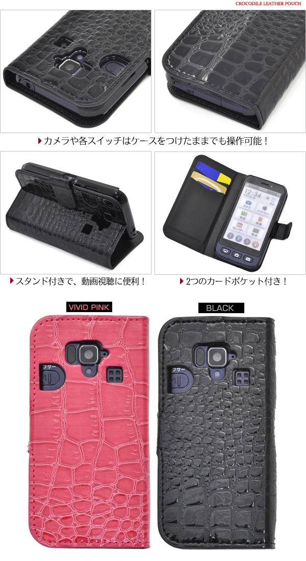 使いやすい手帳タイプ!シンプルスマホ 204SH用クロコダイルスタンドケースポーチ