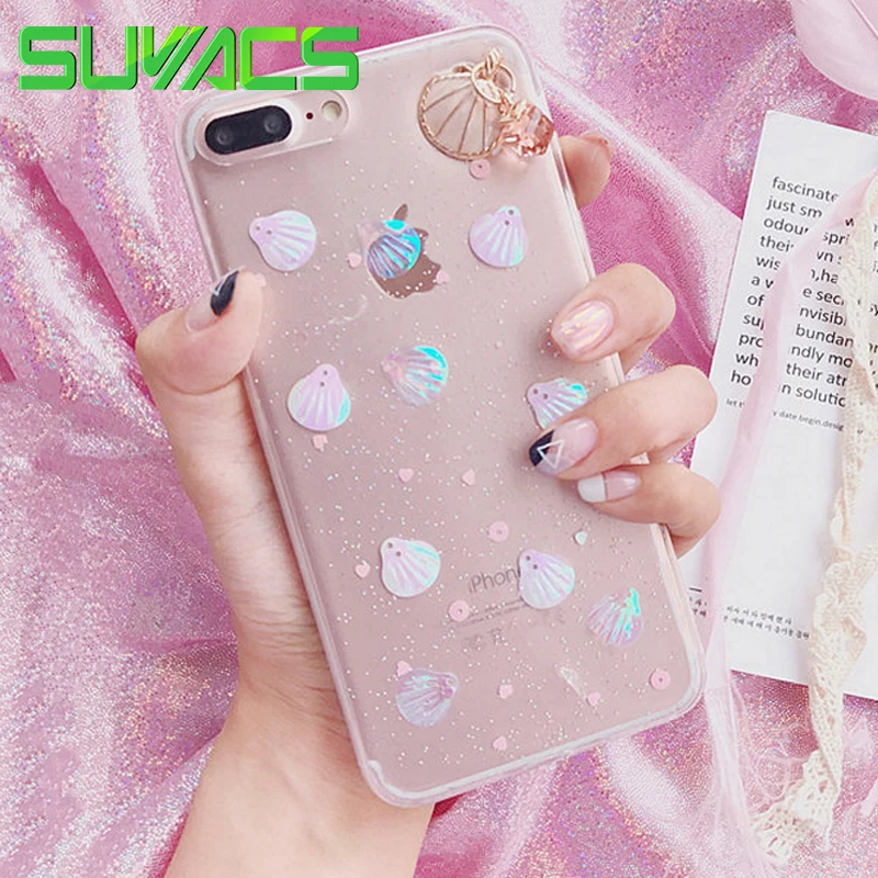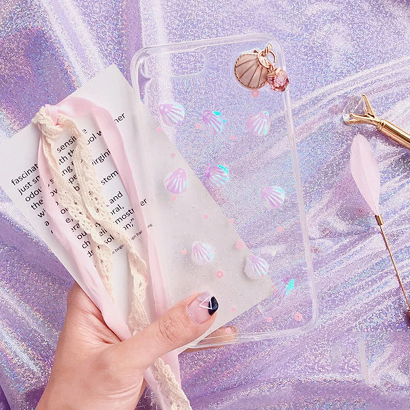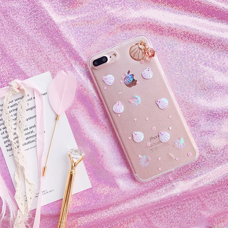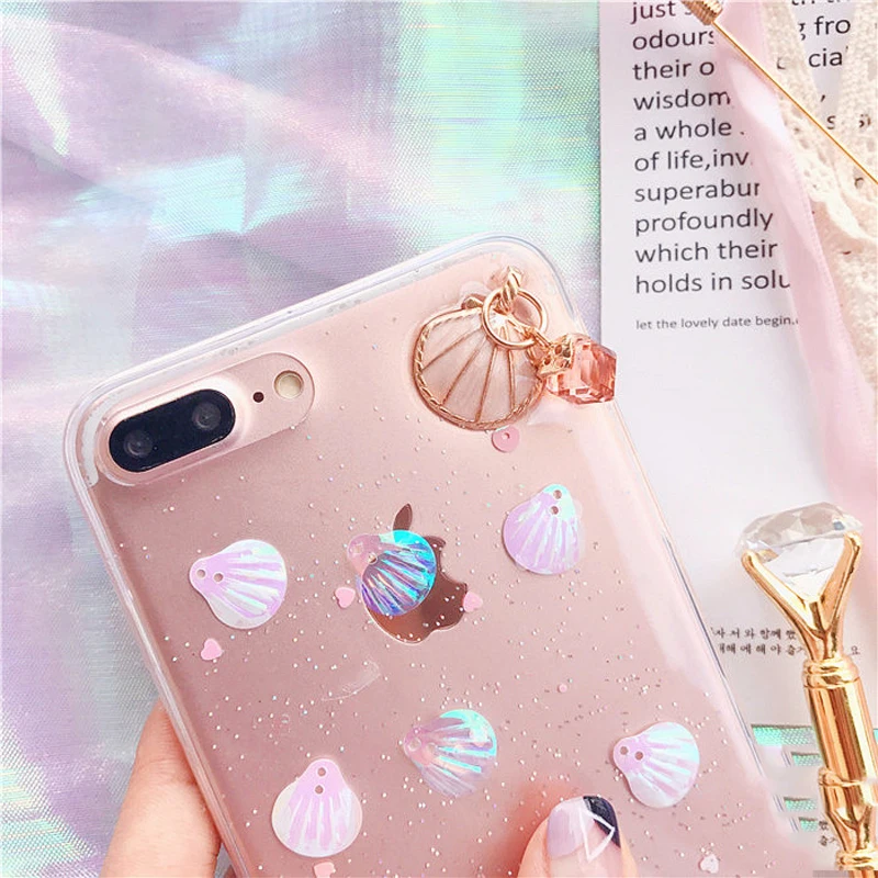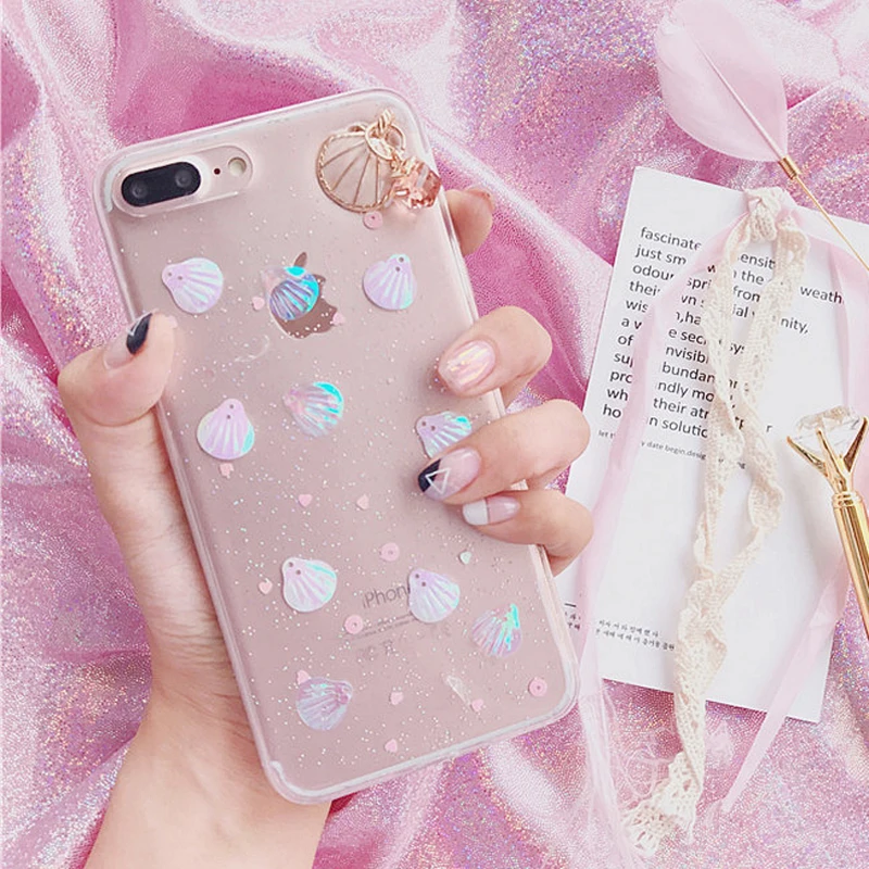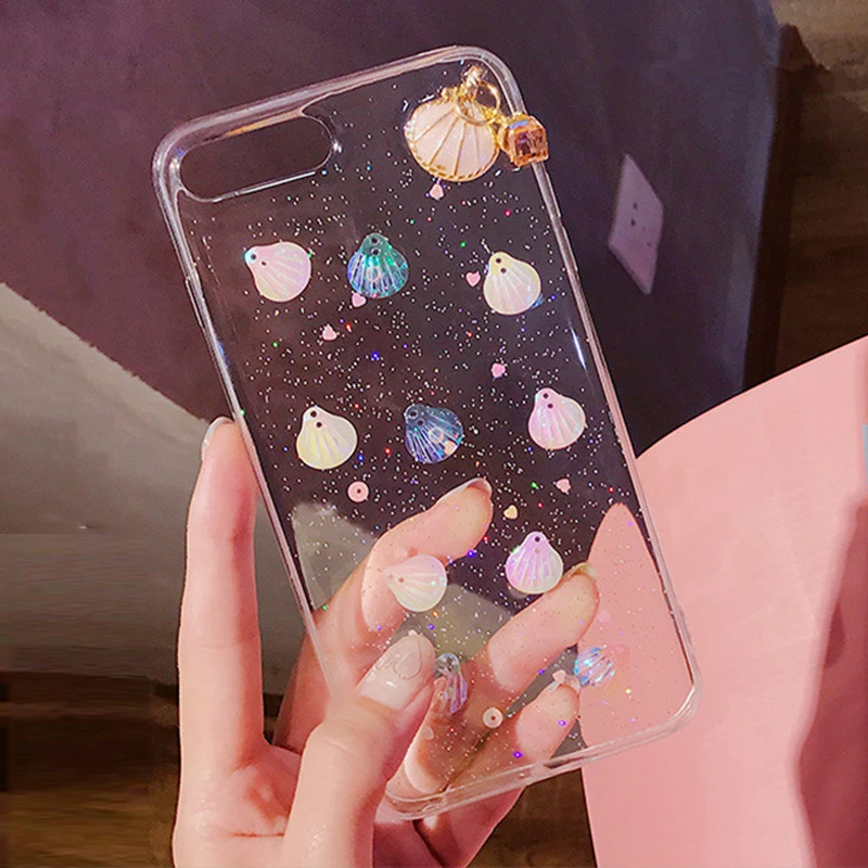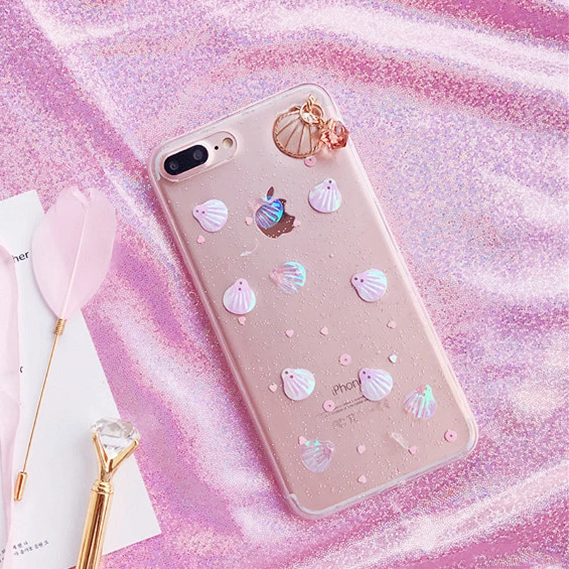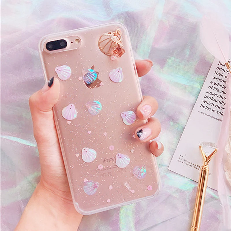 Feature 1:Glitter Powder 3D Conch Shells Transparent Soft TPU Phone Cases
