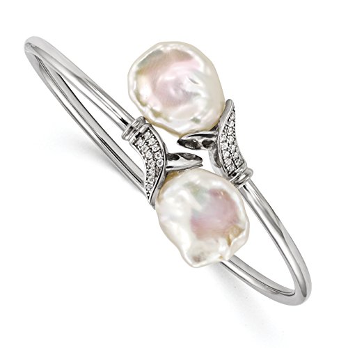 ICECARATS DESIGNER JEWELRY 925 STERLING SILVER 16 17MM WHITE KESHI FRESHWATER CULTURED PEARL CUBIC ZIRCONIA CZ FLEXIBLE BANGLE BRACELET CUFF EXPANDABLE STACKABLE FOR WOMEN