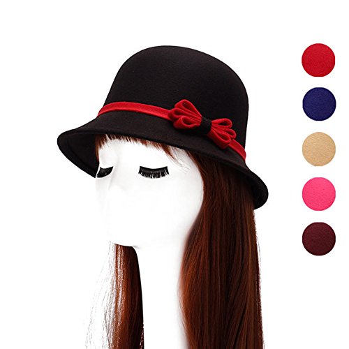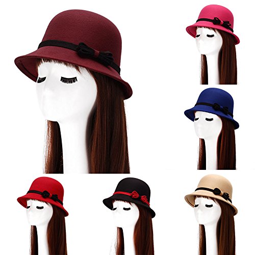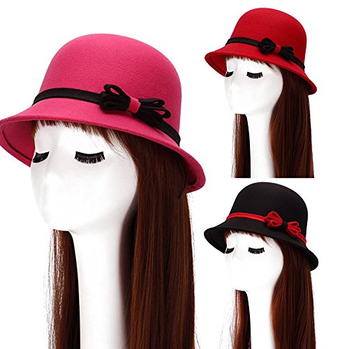 | (SoundsBeauty)/Accessories/Hats/DIRECT FROM USA/SoundsBeauty Fashion Women Causual Charm Hat Lady Cocktail Party Decor Bowknot Cap Gift - Wine Red |