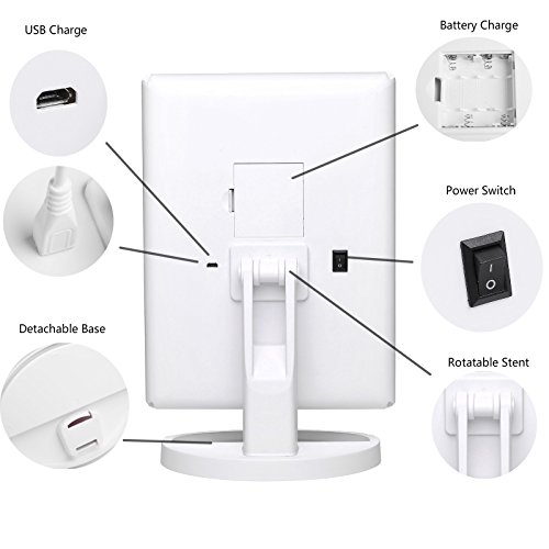 【Dual power supply mode】Power by USB chargeable or 4pcs AAA battery powered (battery not included, usb wire included). LED lights on/off controlled by the touch sensor switch on the mirror screen.Pls noted the mirror can't store power by itself.