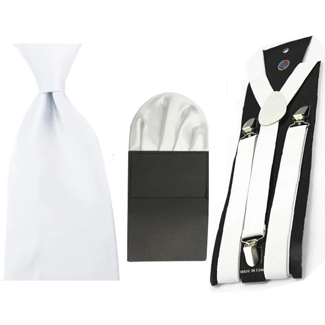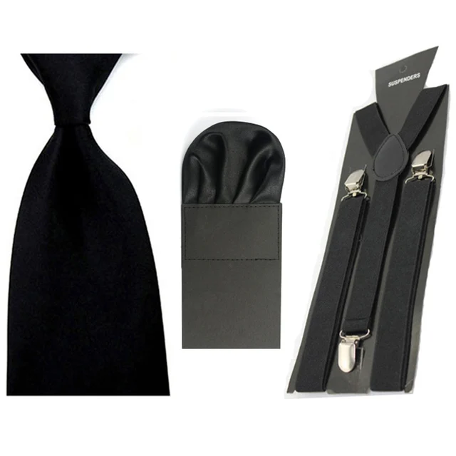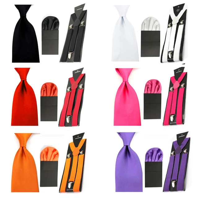 | [해외]남성 솔리드 8 센치메터 목 넥타이 사전 접힌 퍼프 손수건 포켓 스퀘어 서스펜더 교정기 세트 BWSET0054 |