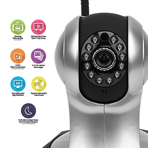 Specifications: Stunning HD Video Quality 1280 x 720p 25 fps Face to Face effect, 320 Degree x 120 degree covers every corner of your home, 12 IR LEDs for Night Vision Up to 10 Meters, Ir cut for capture love images, One million pixel high definition