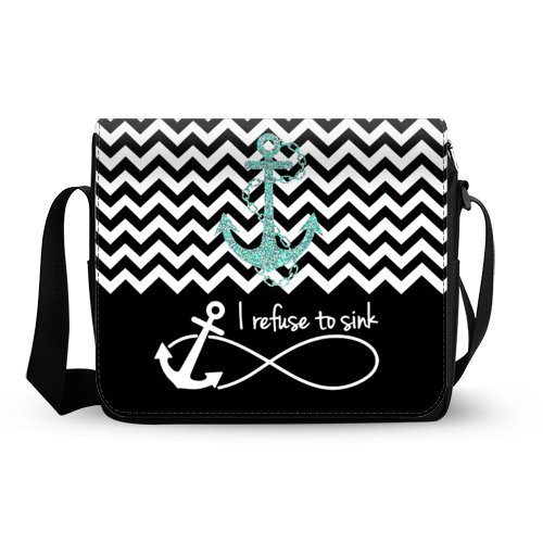 -. Binding : Electronics -. Brand : Stylish Messenger Bag -. Color : Black -. EAN : 0631338105817 -. Feature : Material: oxford fabric, Velcro outside closure / Size: length 12.2" x height 9.4" x thickness 3.5" / Adjustable shoulder strap for easy and comfortable carrying / The inside is fabric lined with 2 zippered pockets / A back zipper pocket and an extra front open pocket in the front for your mobile device, wallets and other smaller essentials -. Label : Stylish Messenger Bag -. Manufacturer : Stylish Messenger Bag -. MPN : MB00016 -. PartNumber : MB00016 -. ProductGroup : PC Accessory -. ProductTypeName : CARRYING_CASE_OR_BAG -. Publisher : Stylish Messenger Bag -. Studio : Stylish Messenger Bag -. Title : Black Colorblock Chevron Zigzag Infinity Anchor Quotes I Refuse to Sink Oxford Fabric Messenger Cross Body Shoulder Bag Travel Bag -. UPC : 631338105817