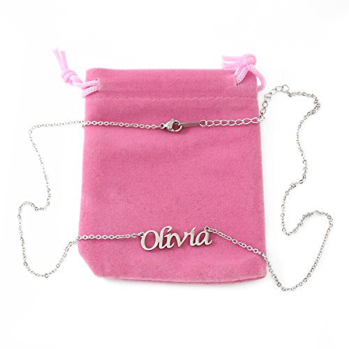 A beautiful stainless steel name necklace perfect as a gift for Anniversary, Birthday, Thank You, Wedding, Engagement or any other special occasion. The necklace has an adjustable chain ranging from 16" to 19" in length, with a weight of between 8 - 10g.