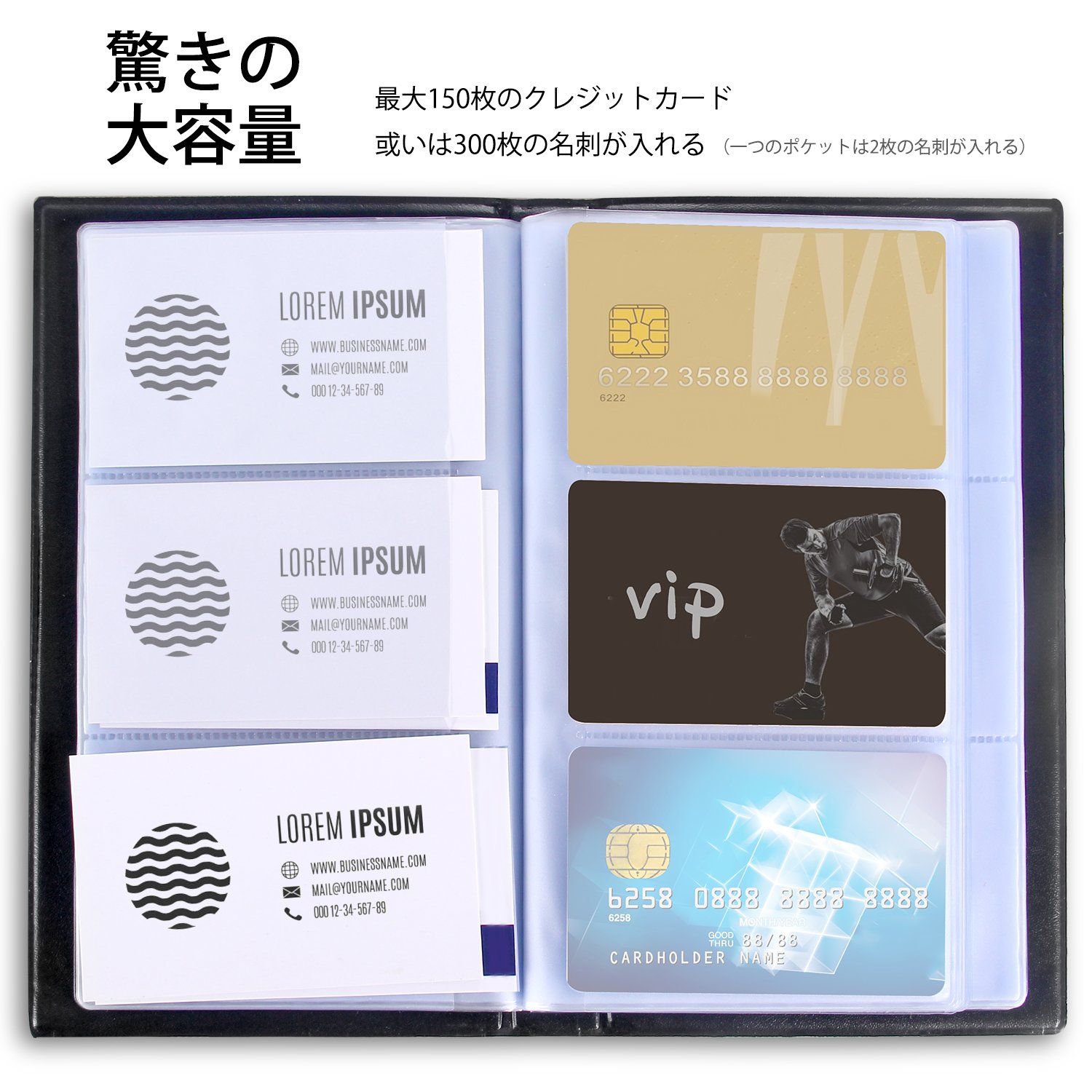 The business card holder uses a high-quality PU to make it smooth, lightweight and easy to hold, large capacity capable of storing as many as 300 sheets.