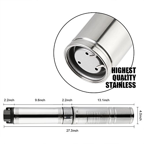 OrangeA Deep Well Submersible Pump 1/2 HP 150ft Deep Well Pump 25GPM Stainless Steel Deep Well Pump For Industrial and Home Use (1/2 HP 220V)