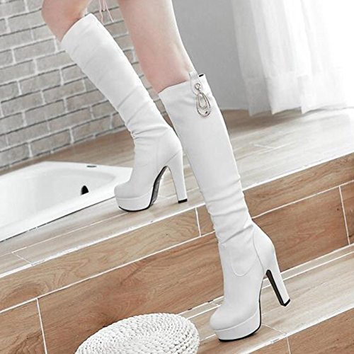 Binding : Apparel Product Description The pair of right shoes can make all the difference. The boots season comes. A pair of long boots is a must-have for a lady who want to be impressed in the crowed. If you're trying to get boots that will send a message with your every step, there's no finer footwear to add glamour close to you than these tall boots from Mofri. These boots don't whisper; they scream with their distinctive and trendy design. This pair of boots make you stand out in any crowd and are sure to heat things up no matter what you wear with them. The block heels raise your height and giving the shoes a chunky shape that is reflection of the latest trends. These shoes from Mofri is made from top quality vegan synthetic leather. Leave those boring basic boots behind. Make this pair boots as your fashion secret weapon and you'll be able to have some sexy appeal which will be the soul of your everyday ensembles. Order a pair in your favorite color! Can't decide? Why not get more? You'll still pay less than the price you would for a single designer pair elsewhere. We will make you always be on the cutting edge of women' s fashion. Mofri is a legal trademark which has registered in United Stated Patent Trademark Office. All right reserved. 0
