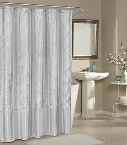 Geometric Design Fabric Shower Curtain 70-inches by 72-Inches (Assorted Colors) (Silver)