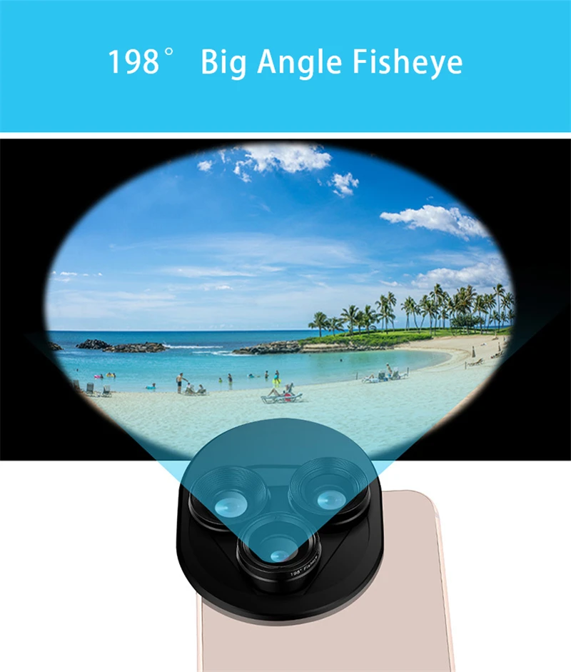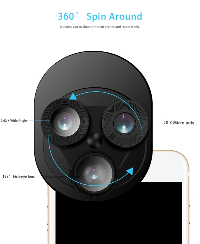 Feature C:198 degree Fisheye + 0.62x Wide Angle + 20X Macro
