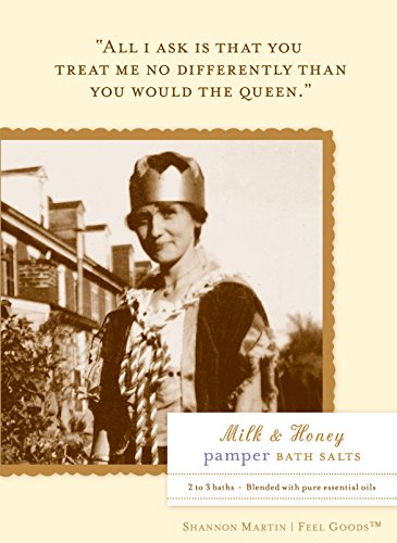 -. Feature : Box of bath salts made from sea salts blended with pure essential oils / 4 x 5.5 x 1.25-Inch box filled with 6 ounces of bath salts / Bath salts box reads: All I Ask Is That You Treat Me No Differently Than You Would The Queen / Fun pairing of retro photograph and message on front of box; great as a gift for that friend who needs to relax, or treat yourself / From cards, sticky notes, and list pads, to soaps, napkins and candles, liven up your life and delight your friends with the colorful characters from the Shannon Martin Girl Designer line