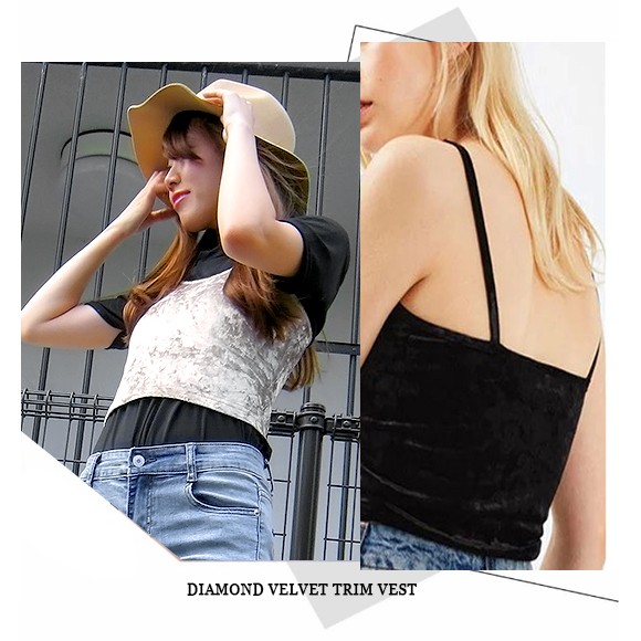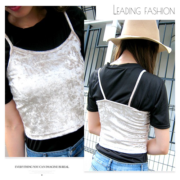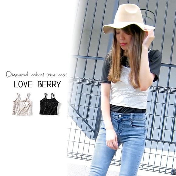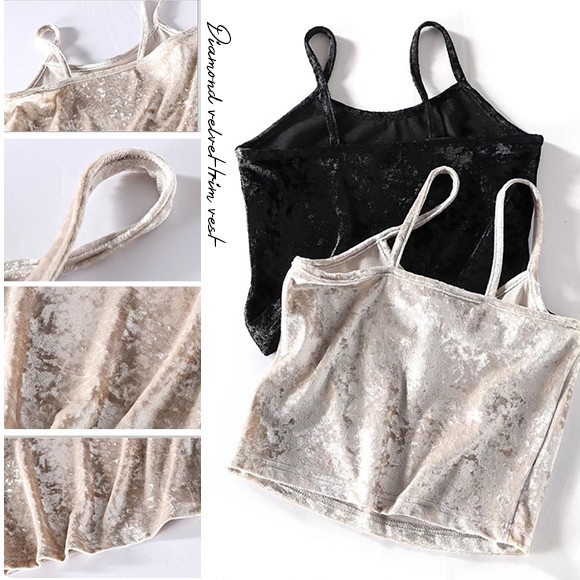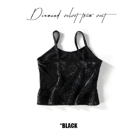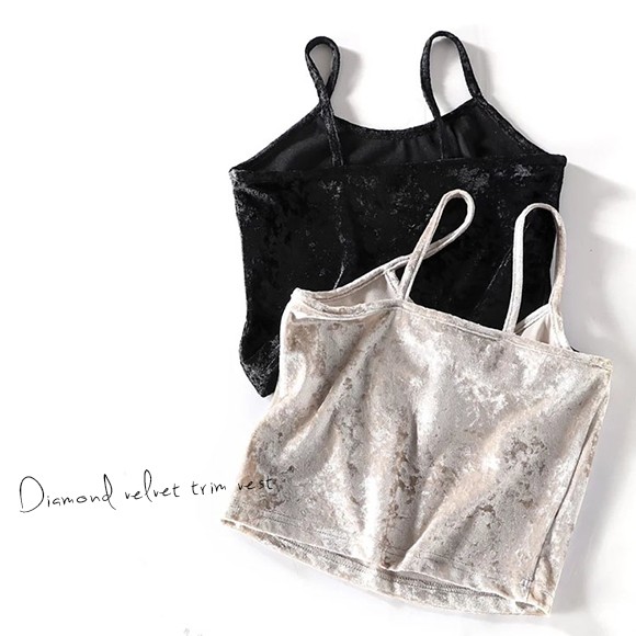 光沢のあるベロア素材がゴージャスなショート丈のキャミソールです☆デニムのショーパンや、シフォン素材のスカートに合わせるのがおススメ♪