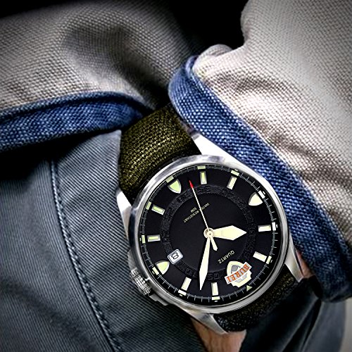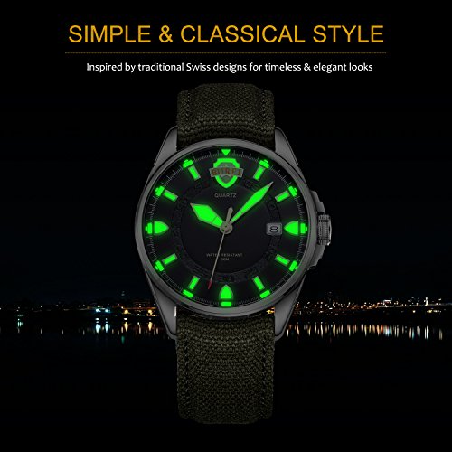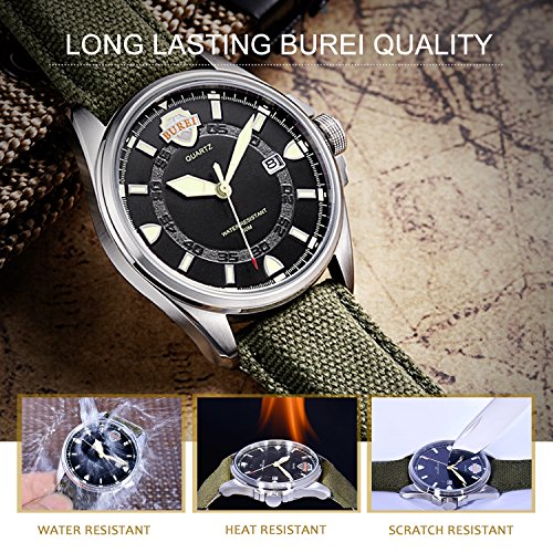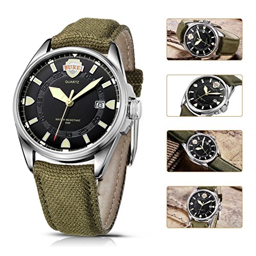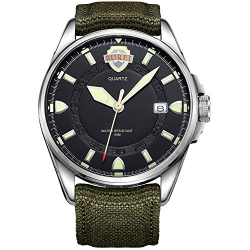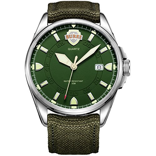 《바오쇼》 (바오쇼)BUREI 맨즈 손목시계 아날로그 표시 날짜 표시 기능 야광 기능 심플 멋쟁이 나일론 벨트 쿼츠 무브먼트 실버 케이스 카키 그린 문자판