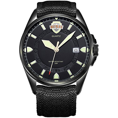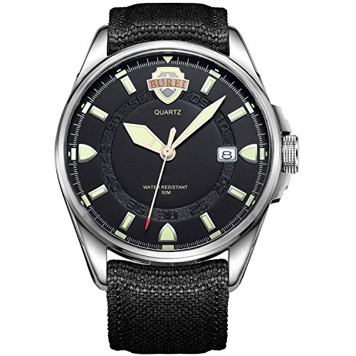 원본상품명: (バオショ)BUREI メンズ 腕時計 アナログ表示 日付表示機能 夜光機能 シンプル おしゃれ ナイロンベルト クォ?ツム?ブメント シルバ?ケ?ス カ?キグリ?ン文字盤
