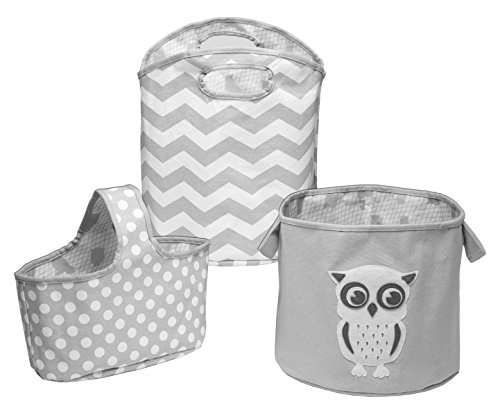 Delta Children 3 Piece Canvas Nursery Storage Set, Grey Owl