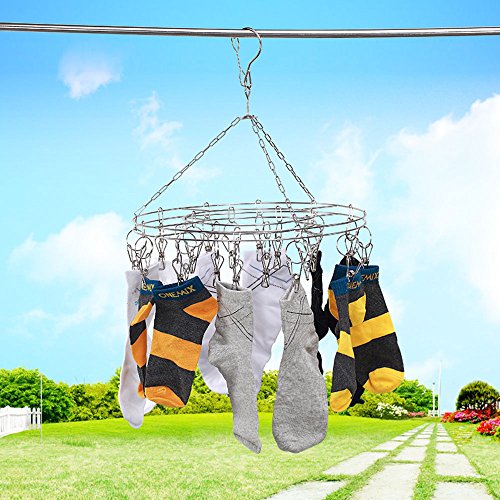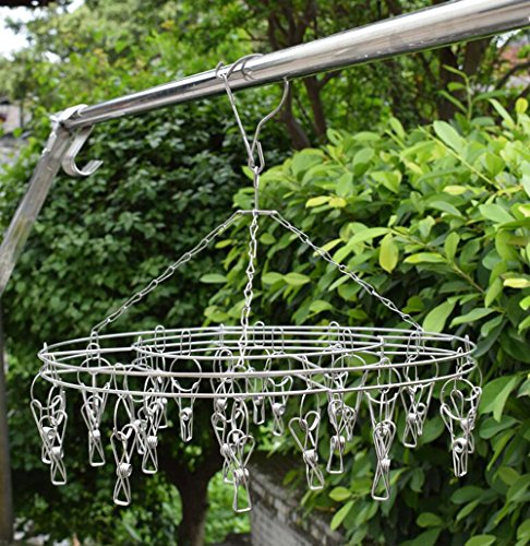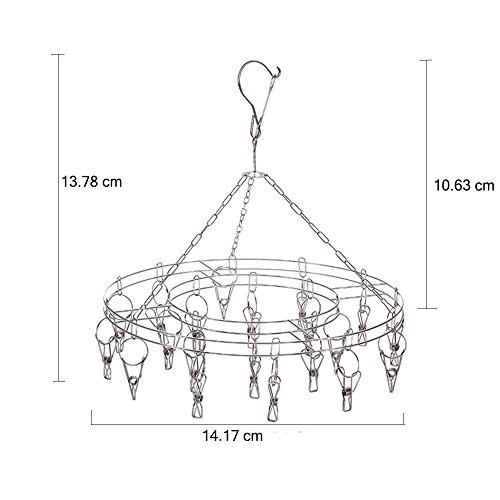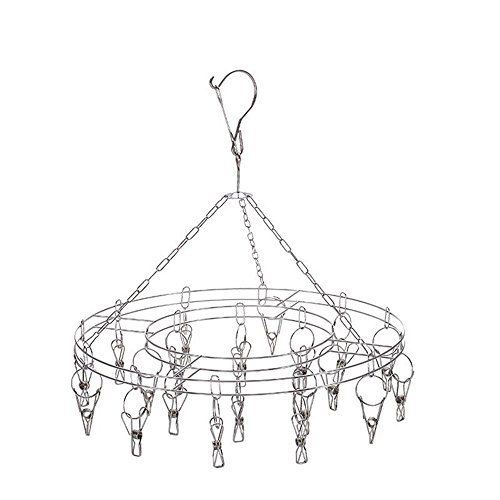 Clothing Drying Rack Wekity Stainless Steel Multifunction Round Hanging Drying Rack Double Tier Round Easy Drying Hanger Rack Laundry Drip Hanger with 20 Clothespins for Drying Clothing, Socks, Towels
