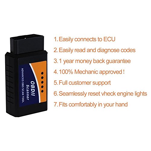 Wide Compatibility: Works with OBD2 / EOBD compliant cars and light trucks (in United States, vehicles in year 1996 and after are supported).Supports all OBD-II protocols: ISO15765-4 (CAN), ISO14230-4 (KWP2000), ISO9141-2, J1850 VPW, J1850 PWM. (May not support some Hybrid or electric vehicles).