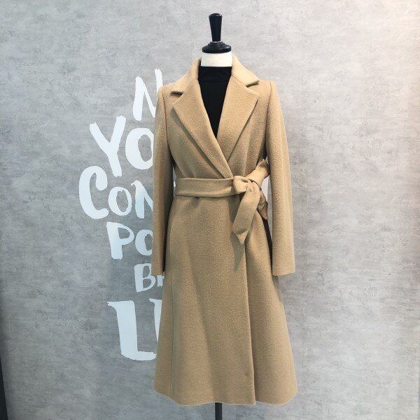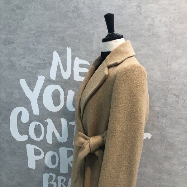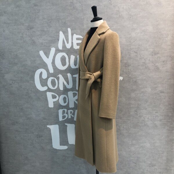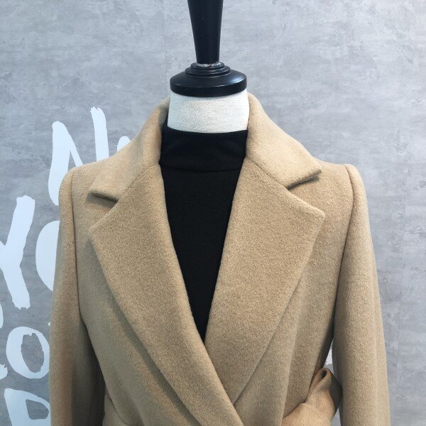 벨티드 디테일의 A라인 실루엣이 페미닌한 캐시미어 블렌드의 코트입니다