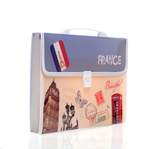 -. Feature : This extension folder has a very nice look, this is it and other folders unique place, especially for students. / Additional Information: It has 13 pockets with 24 enclosed naming tabs and subject labels which provides an easy subdivision of documents to increase sorting efficiency and file management. Its buckle switcher enables it to be opened with an easy push. / There is a small groove to put your pens and it comes with a comfortable telescopic handle which can alleviate the oppression of somewhat heavy materials. Its sturdy construction makes it easy for carrying materials and also enhances its security,Opaque appearance effectively guarantee the contents of the document leak. / Size and Weight: 13.1" x 10" x 0.7" & 255g which makes it suitable for daily filing and storing of documents; A4 sized and lesser than A4. It can hold approximately 400 sheets. / Application:For document classification, archiving, preservation, income student learning materials, stationery.