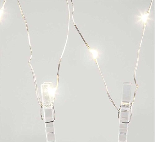 Photo clip lights: 20 LED silver and clear photo string lights, warm white, battery operated, hanging photos, polaroids, artwork, cards. Cute room decor, fairy lights.