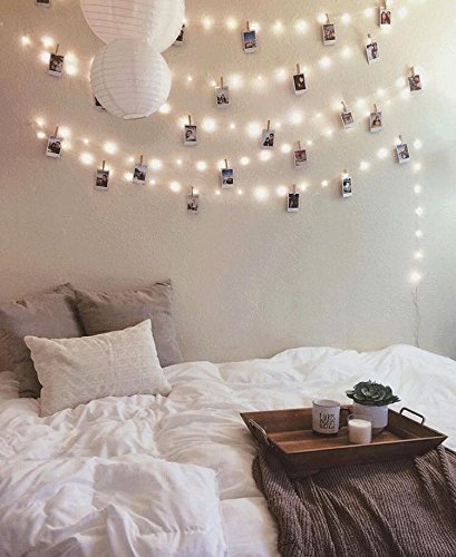 - DECORATIONS- Great for adding something cute to any space. Hang up to 20 photos, pieces of artwork, cards and any paper to a beautifully lit hangable light string with clips.