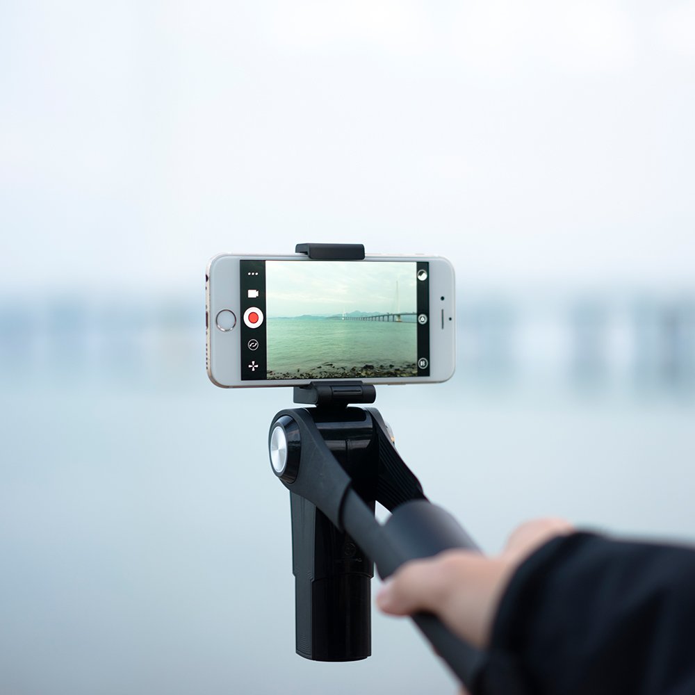 Omni-directional follow: The horizontal and pitch of the camera platform (smartphone) rotate as the lever moves up and down or left and right.