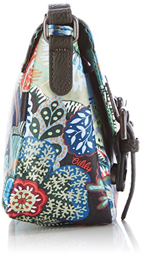 Mit dieser liebevoll gestalteten Umhängetasche von OILILY bist Du unterwegs mit dem Nötigsten ausgestattet. Denn unter dem Überschlag mit Zierschnallen befinden sich nicht nur zwei Magnetverschlüsse, um die zierliche Damentasche zu öffnen. Hier findest Du auch ein Reißverschlussfach und ein weiteres Fach im Inneren der Tasche sowie ein Vorderfach. Das Innenfutter ist adrett designt mit einem Rautenmuster und der Markenaufschrift von OILILY. Auch der rote Farbton des Logos auf dem Überschlag wird innen bei einigen Details weitergeführt, so dass sich innen wie außen ein harmonischer Gesamteindruck ergibt. Die Zierschnallen und der Schulterriemen sind aus farblich darauf abgestimmtem Kunstleder und runden das Design gekonnt ab. Maße: Breite: 18 cm, Höhe: 15 cm, Tiefe: 7 cm, verstellbarer Schulterriemen Gesamtlänge: 113 cm