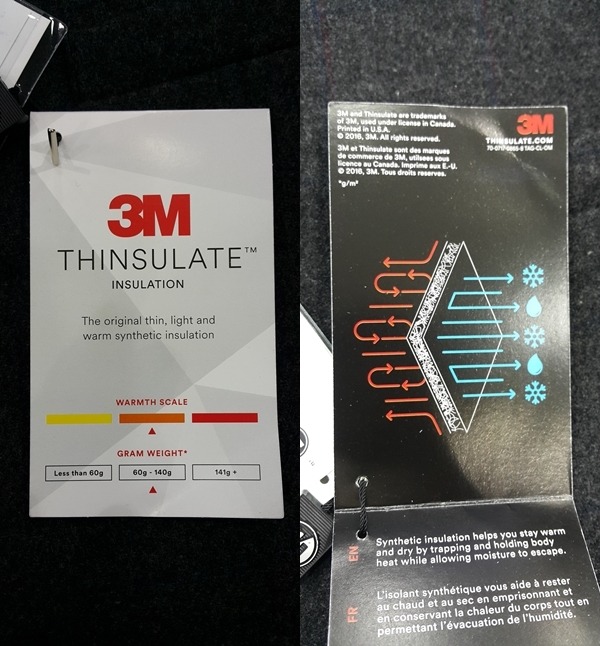 안감 신슐레이트 충전재가 들어가 있어