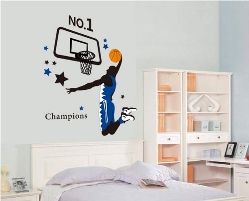 -. Title : Kappier Giant Jumping Basketball Superstar - I Am a Champion Peel & Stick Wall Decals