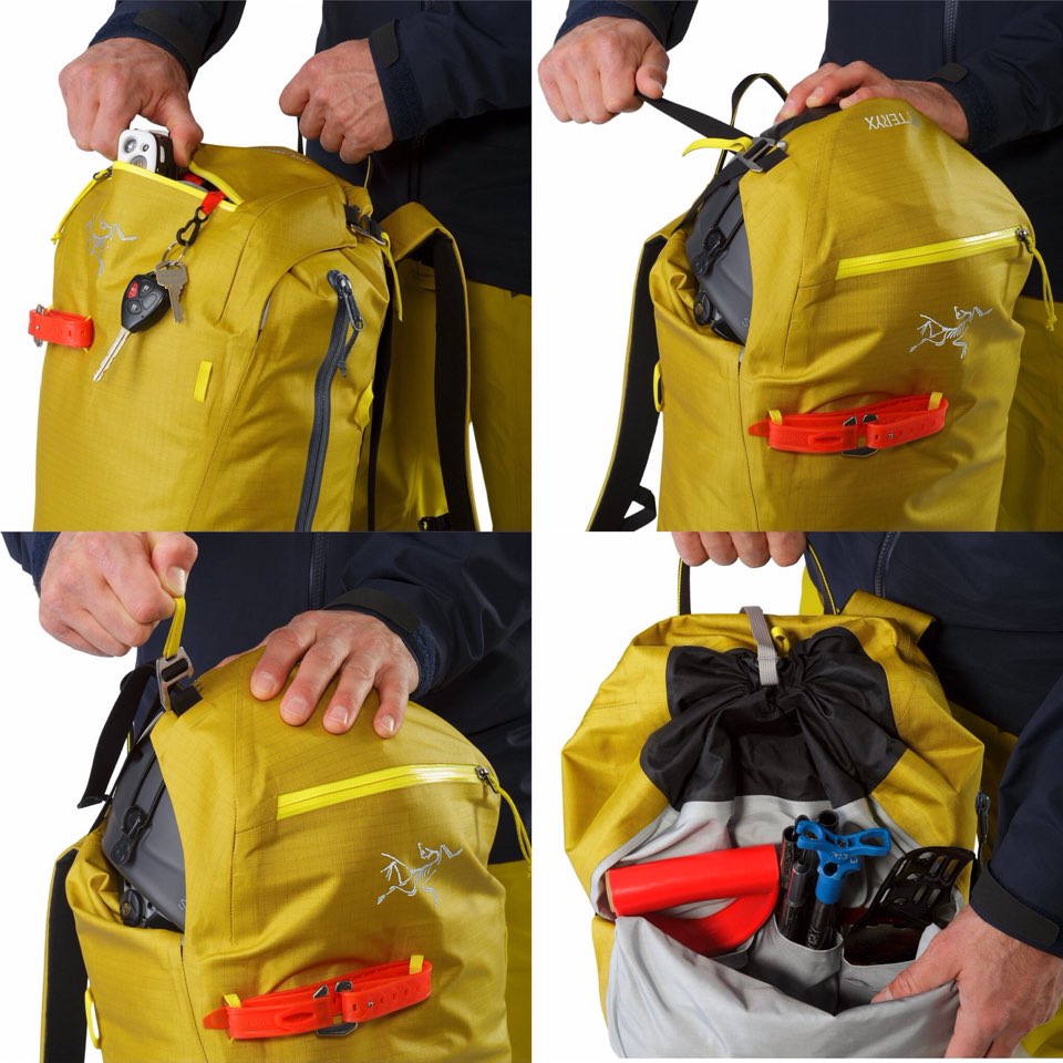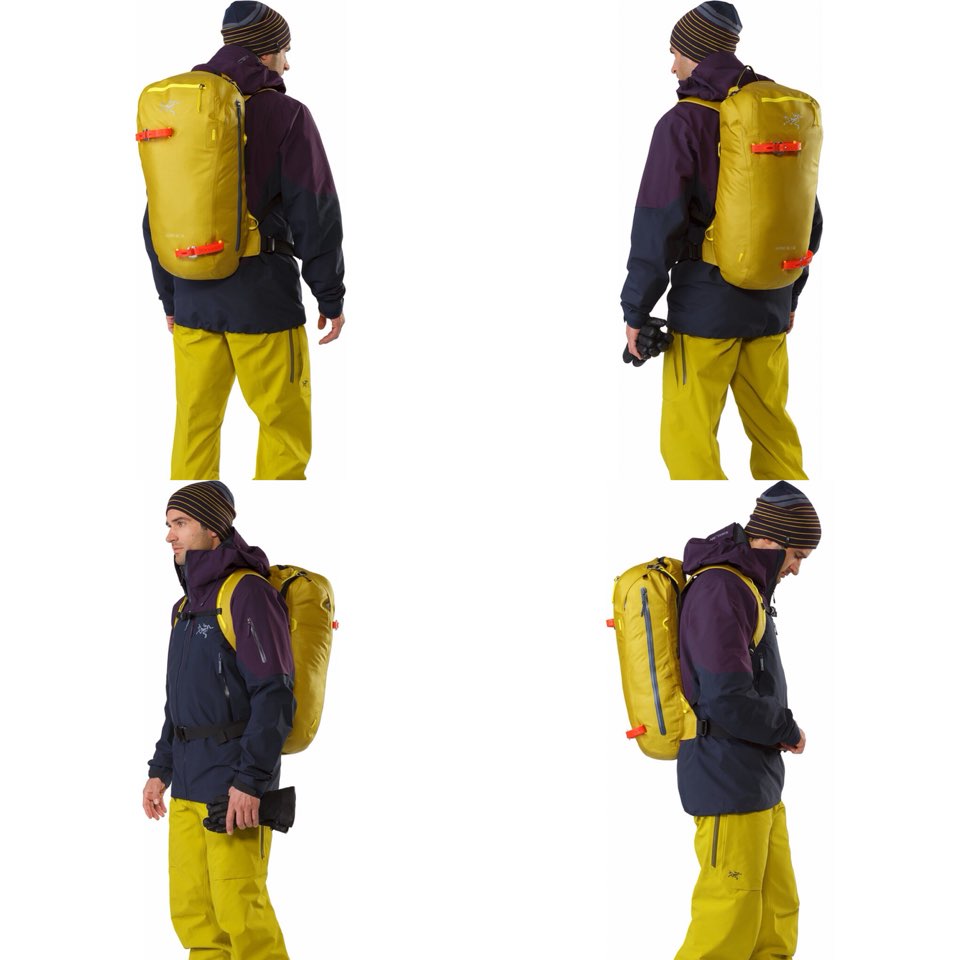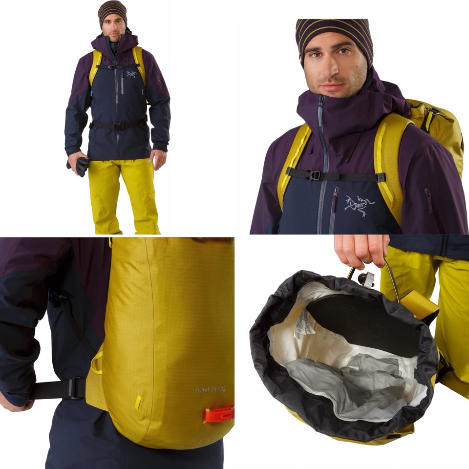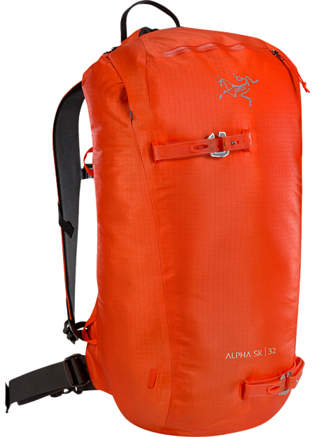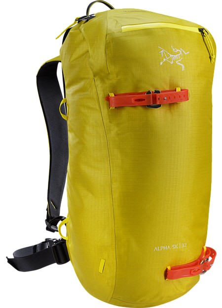 스키 투어링과 스키 알피니즘을 위한 데이백, 경량의 소재로 제작하였음에도 내구성이 뛰어나며 극한의 날씨에 견딜 수 있는 알파 시리즈 백팩