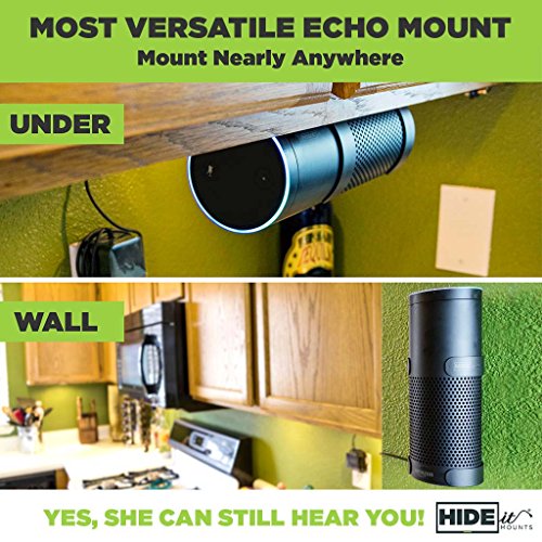 SPACE-SAVING ORGANIZATION FOR ANY ROOM IN YOUR HOME. The HIDEit Echo Mount enables you to wall mount your Amazon Echo Speaker, freeing up valuable space on countertops, tables and dressers. Turn Alexa into wall decor in your kitchen, living room, bedroom and even your bathroom!