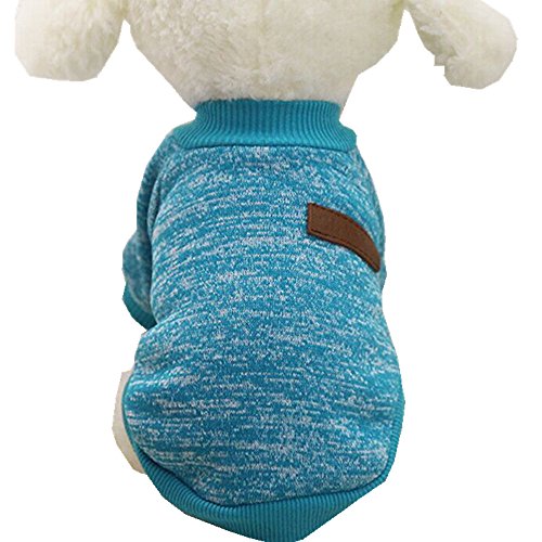 (Handyulong)/Pet Supplies/Apparel Accessories/DIRECT FROM USA/Pet Dog Sweater, Handyulong Puppy Classic Fleece Sweater Clothes Warm Sweater Winter (S, Blue)