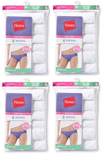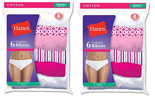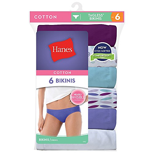 Finally panties that dont misbehave. These 100 cotton panties wont ride up.Features. Soft breathable cotton comes preshrunk for lasting fit.. Low rise elastic waist fits gently for all-day ease.. No Ride Up leg bands.. Alluring bikini styling makes the most of your curves.. Two-layer cotton liner.. Assorted may be prints solids all white or a combination.. Pack 6.. Fabric Content - 100 Cotton.. Size - 5.Feature